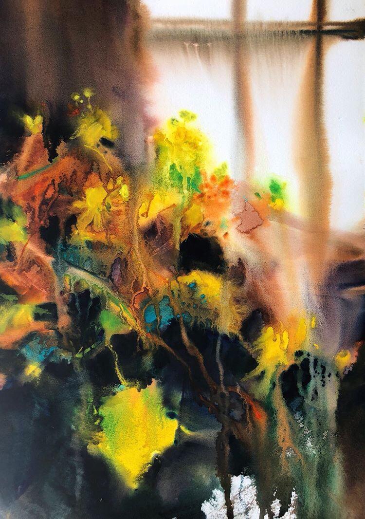 Приходит понимание, что ты являешься этим инструментом всепроникающей божественной энергии, а медитация настраивает внутреннний камертон. Акварель, спонтанная и стихийная техника, рождает сама по себе удивительные вещи, и ты лишь наблюдаешь за тем случается на бумаге и пробуешь сохранить.